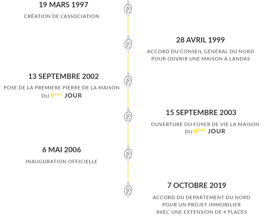 L’Association « Le 8ème Jour » est déclarée à la Préfecture du Nord le 19 mars 1997.